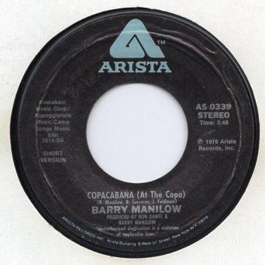 1978, Arista, AS 0339, Styrene BARRY MANILOW A SIDE : Copacabana (At The Copa) (Long Version) CONDITION:EX B SIDE : Copacabana (At The Copa) (Short Version) ------------------------------------------------------------ VENUS ( CANCER ), RAE TOWN ♪ SOUL TIME ♪ CARIBOO RECORDS RECOMMEND ♪ KOOL97FM ♪ Dean Fraser Sax Cover Gavin Porsche Cover Ambelique Cover