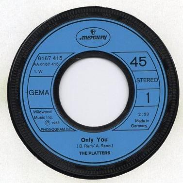 ( Original 1956), Mercury, C-30065, Reissue, Germany, Vinyl THE PLATTERS CONDITION : EX A SIDE : Only You (And You Alone) B SIDE : The Great Pretender ------------------------------------------------------------ RAE TOWN ♪ KOOL97FM ♪